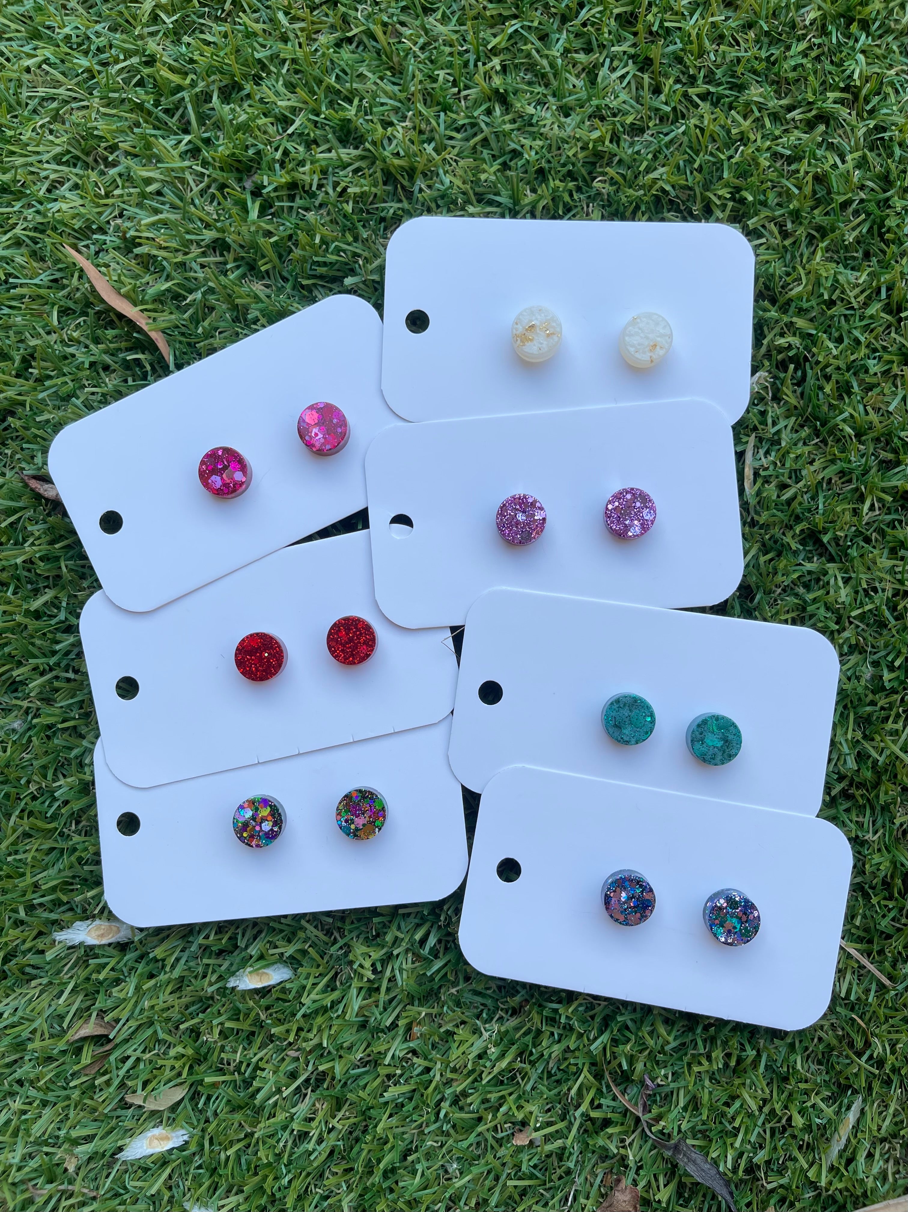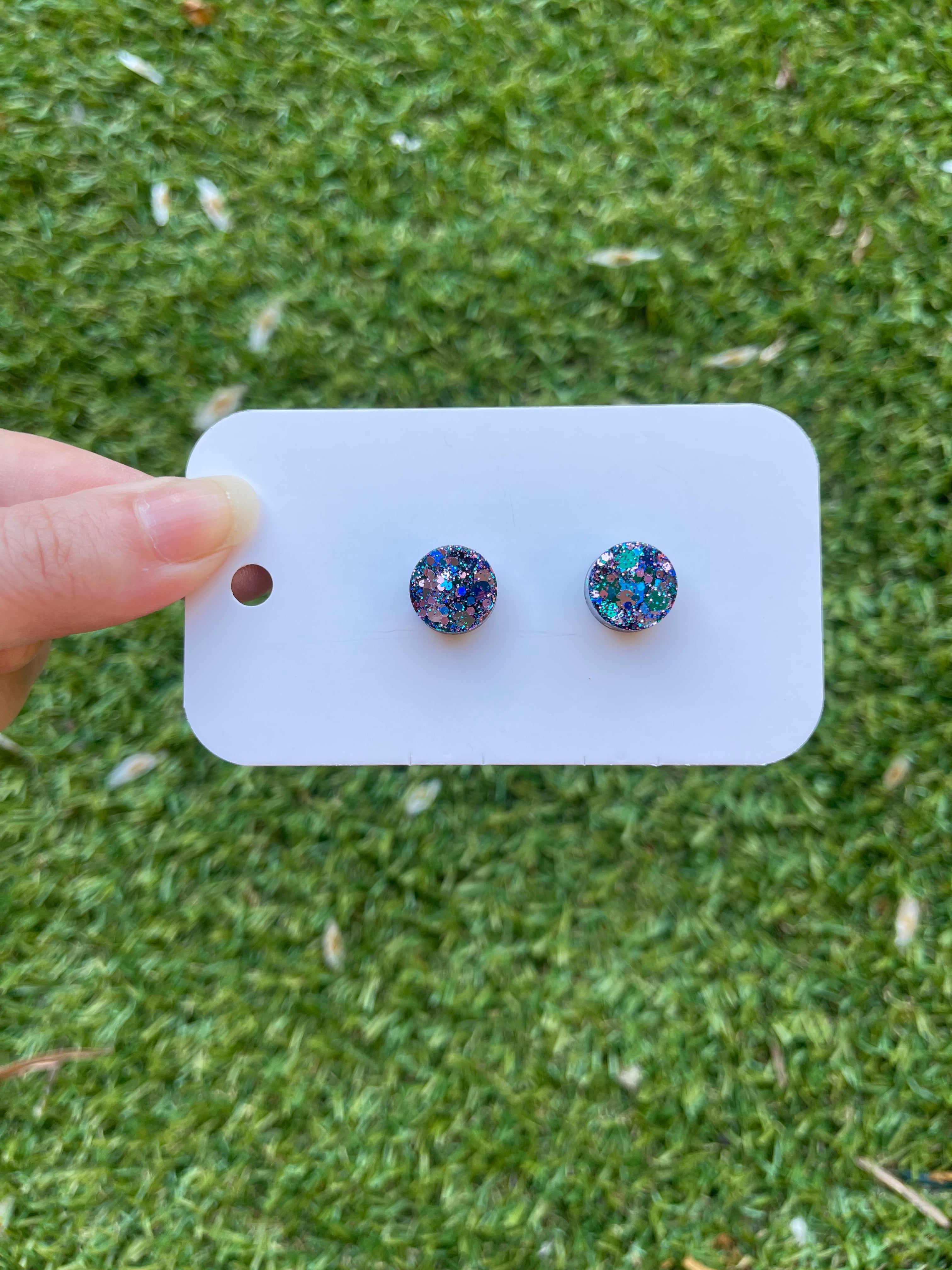These elegant resin earrings feature vibrant glitter suspended within a polished resin finish, creating a striking visual statement. Handcrafted with precision and fitted with premium stainless steel posts, they deliver both sophistication and practical durability.