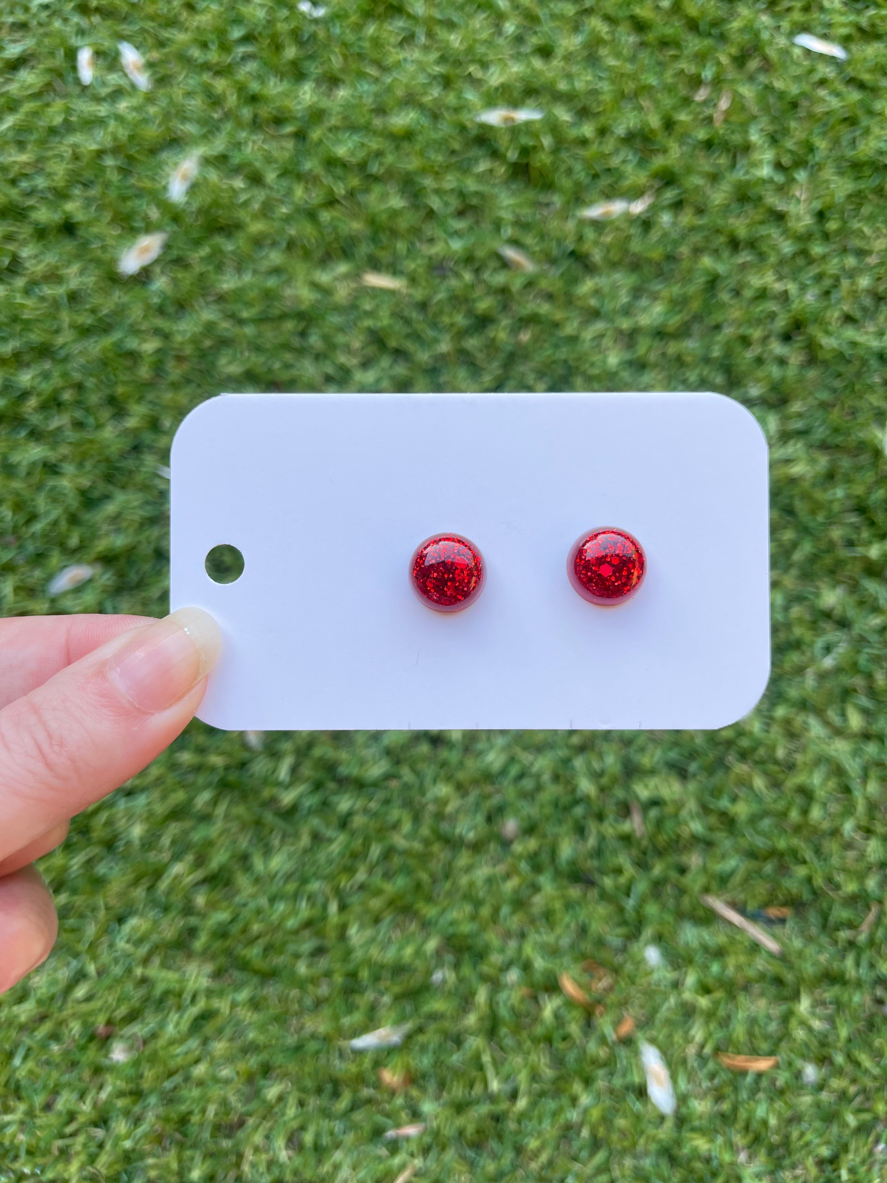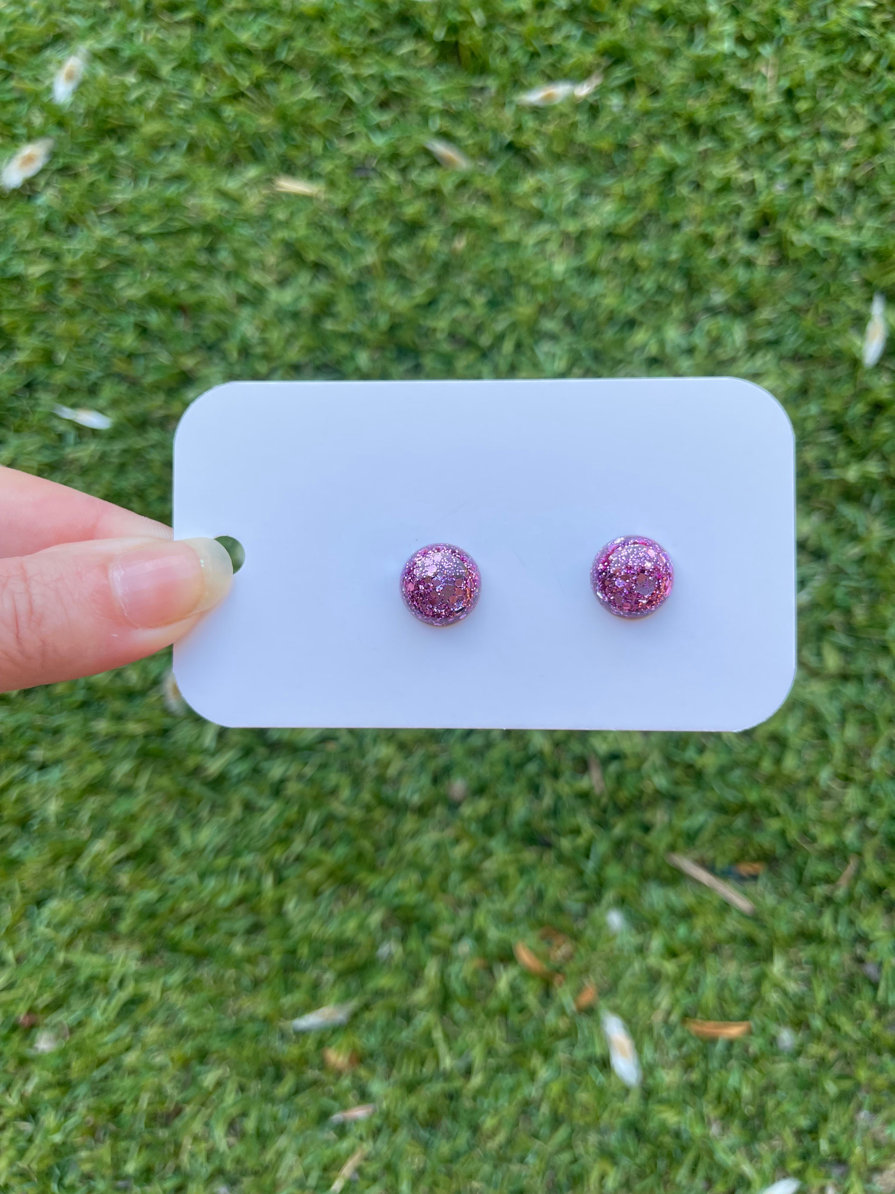 These elegant resin earrings feature vibrant glitter suspended within a polished resin finish, creating a striking visual statement. Handcrafted with precision and fitted with premium stainless steel posts, they deliver both sophistication and practical durability.