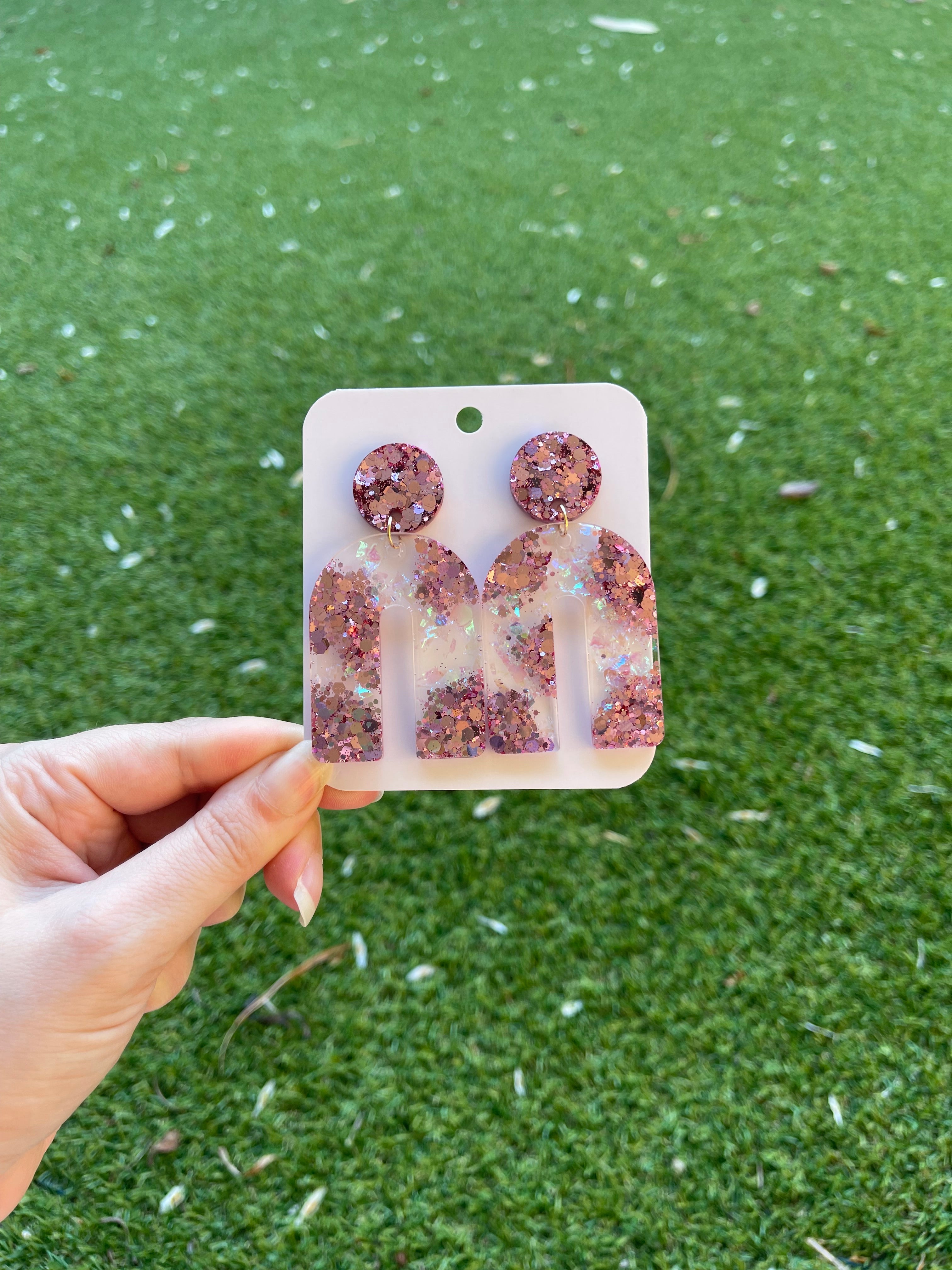 These elegant resin earrings feature vibrant glitter suspended within a polished resin finish, creating a striking visual statement. Handcrafted with precision and fitted with premium stainless steel posts, they deliver both sophistication and practical durability.
