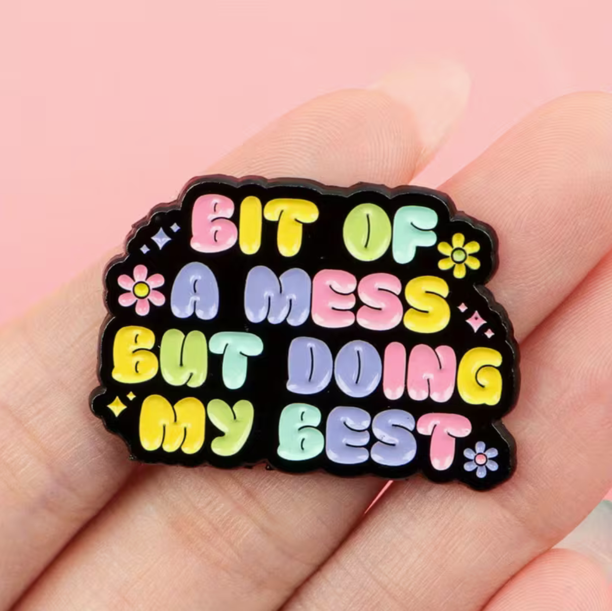 Reviews 'Bit of a mess but doing my best' enamel Pin 0 out of 5 stars This product has no reviews yet Write a review Write a review
