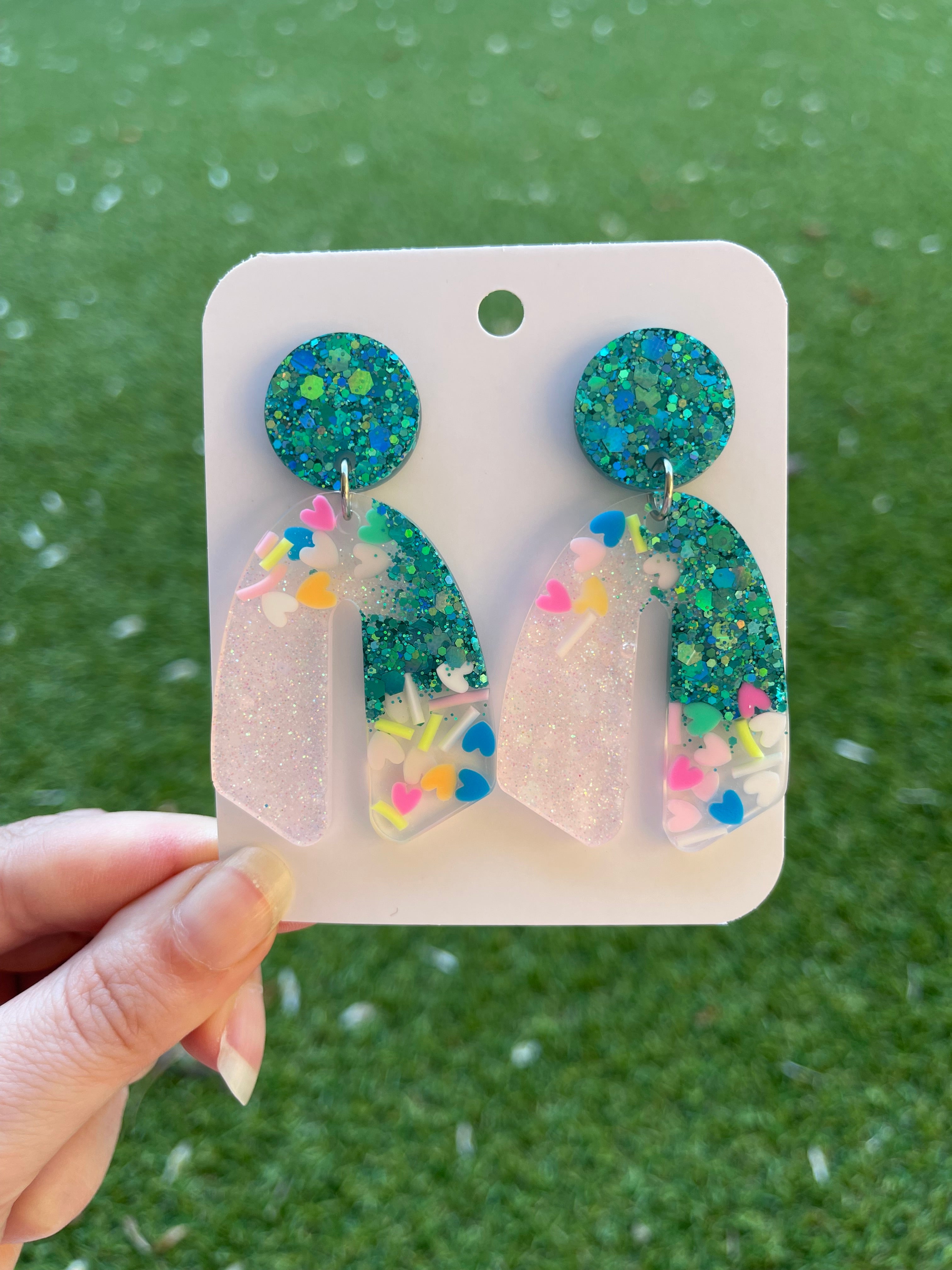 Reviews Curve Glitter Earrings- Emerald and Confetti Hearts 0 out of 5 stars This product has no reviews yet Write a review Write a review