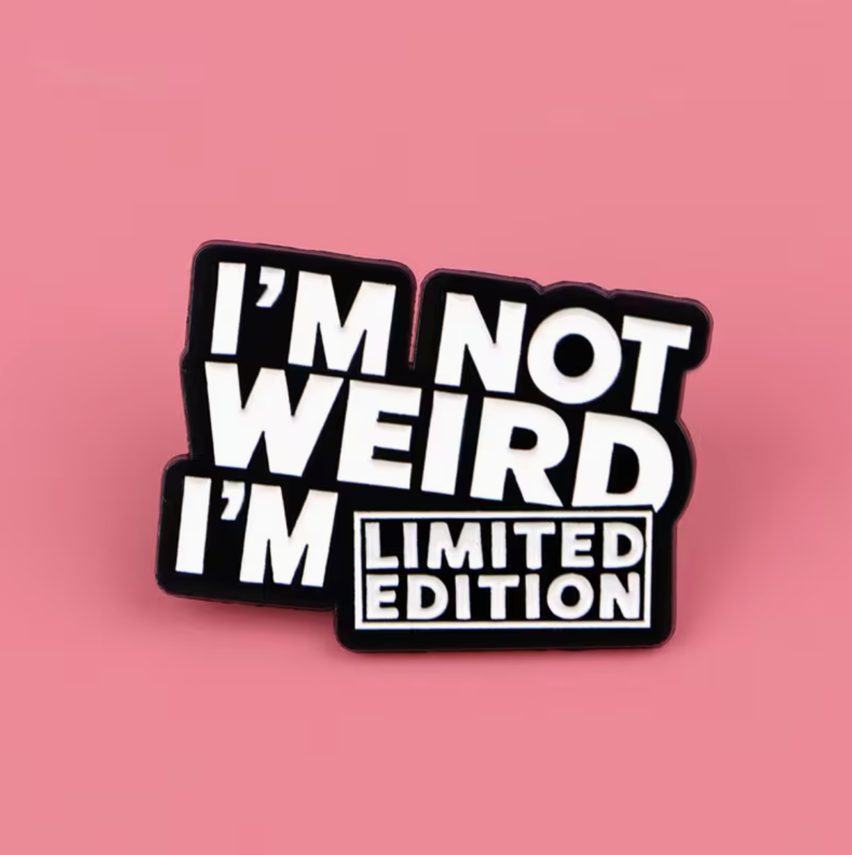 Reviews 'I'm not weird I'm limited edition' black and white enamel Pin 0 out of 5 stars This product has no reviews yet Write a review Write a review