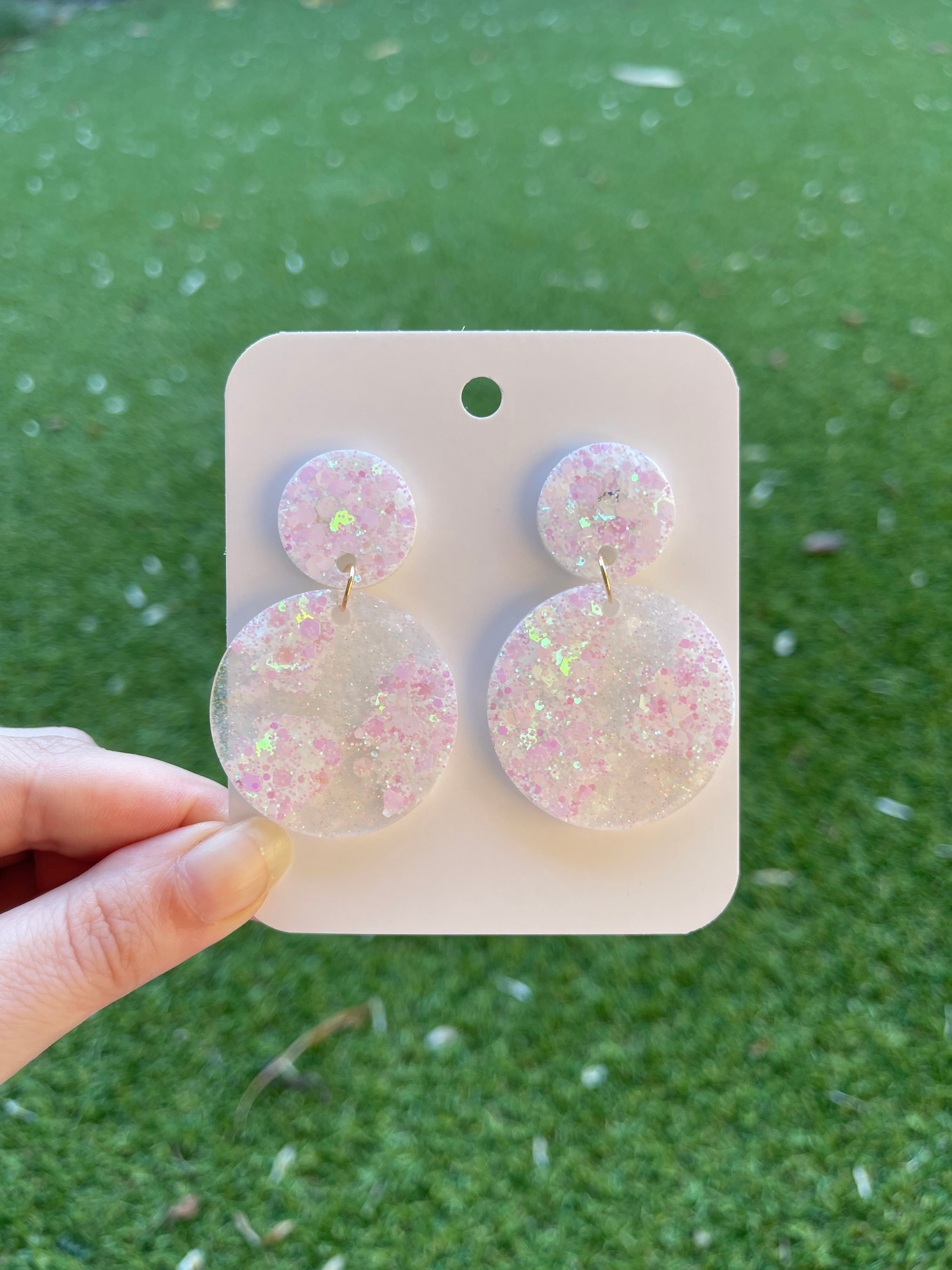 Reviews Large Circle Glitter Earrings- White holographic 0 out of 5 stars This product has no reviews yet Write a review Write a review