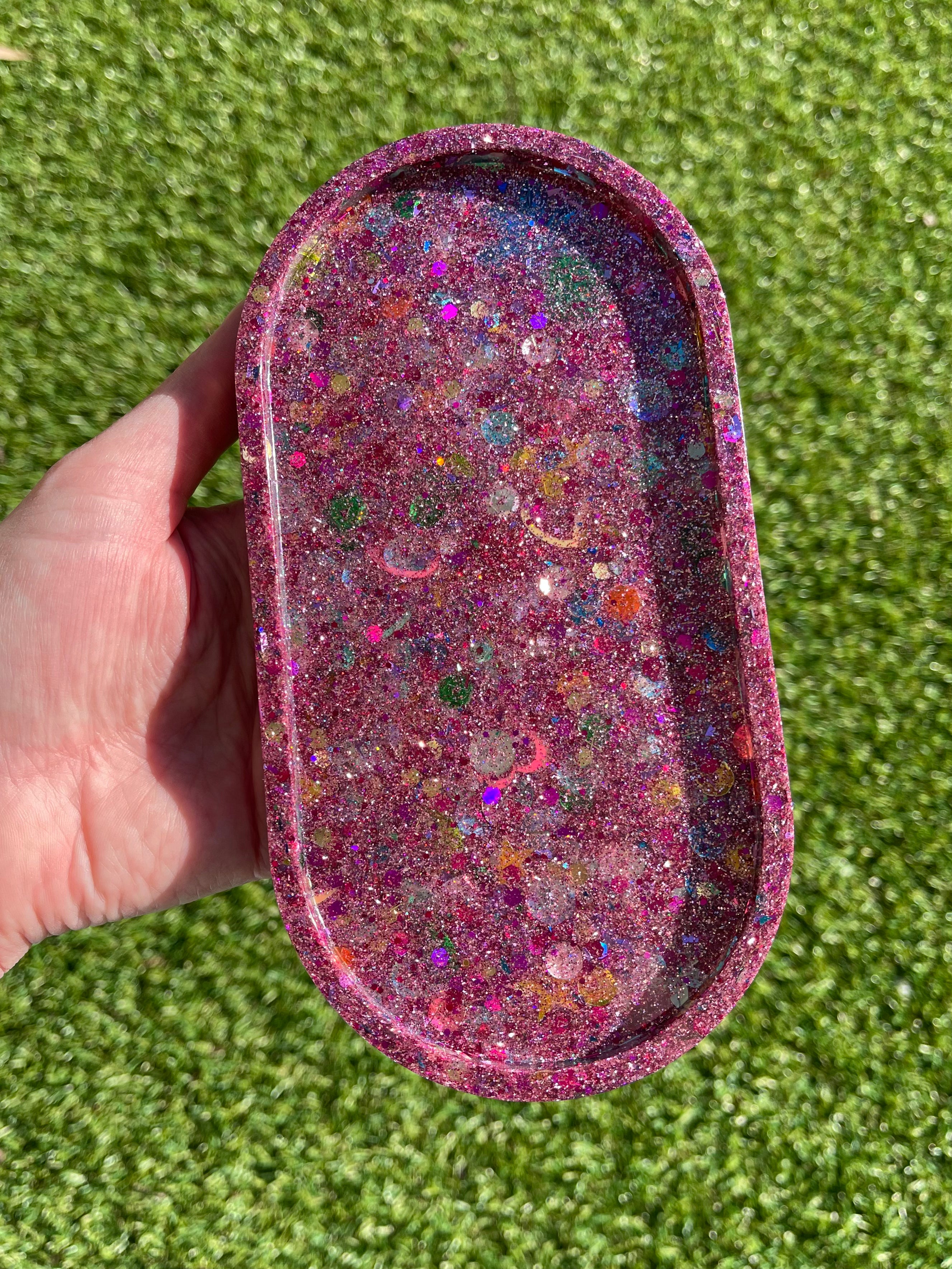 Pink Sequins Oval Tray