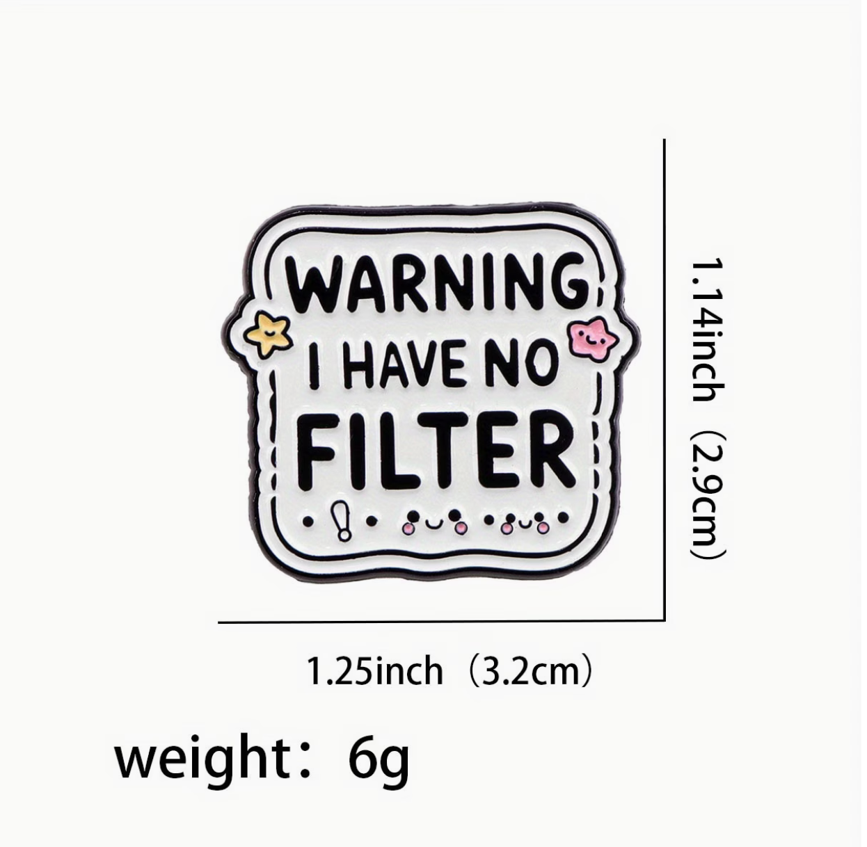 Reviews 'Warning I have no filter' enamel Pin 0 out of 5 stars This product has no reviews yet Write a review Write a review